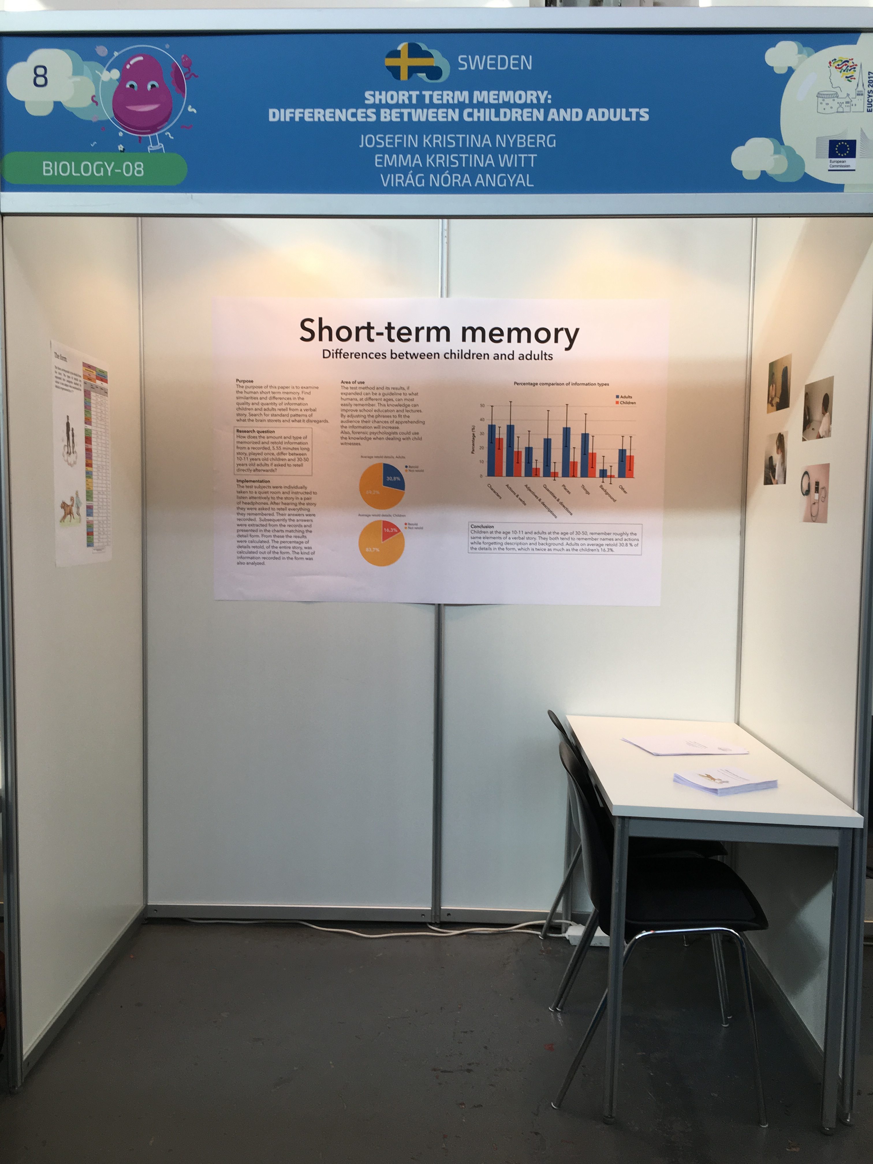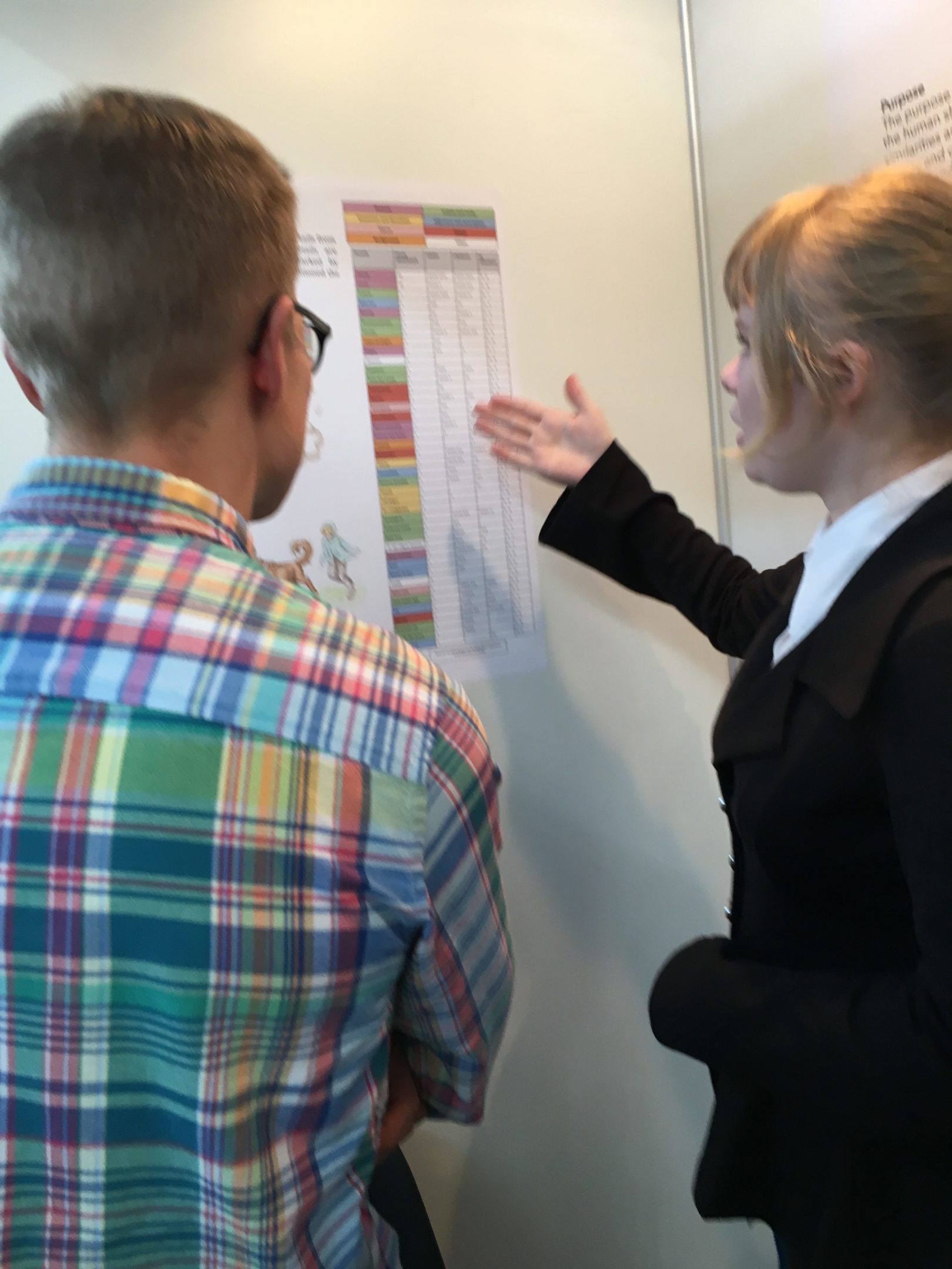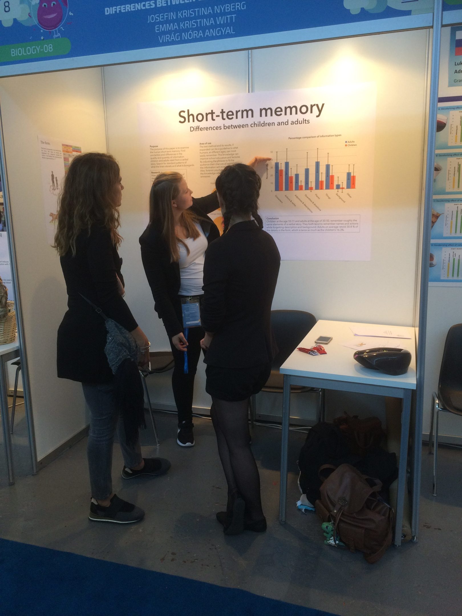 Tävlingens andra dag och vi har pratat med många andra deltagare och två domare. Bland annat pratade vi med två jättesnälla tjejer från Kina som har riktigt intressanta projekt som kommer att rädda liv någon dag. Vi har också pratat mycket med en tjej från Slovakien som är jättetrevlig och vi åt också lunch med henne. Sedan fick vi en uppgift att bilda ett lag och bygga ett så bra och högt sugrörstorn som möjligt. Vi hamnade med två tyska killar, vilket var jättekul och vi hoppas på att vårt torn blev det högsta och bästa.