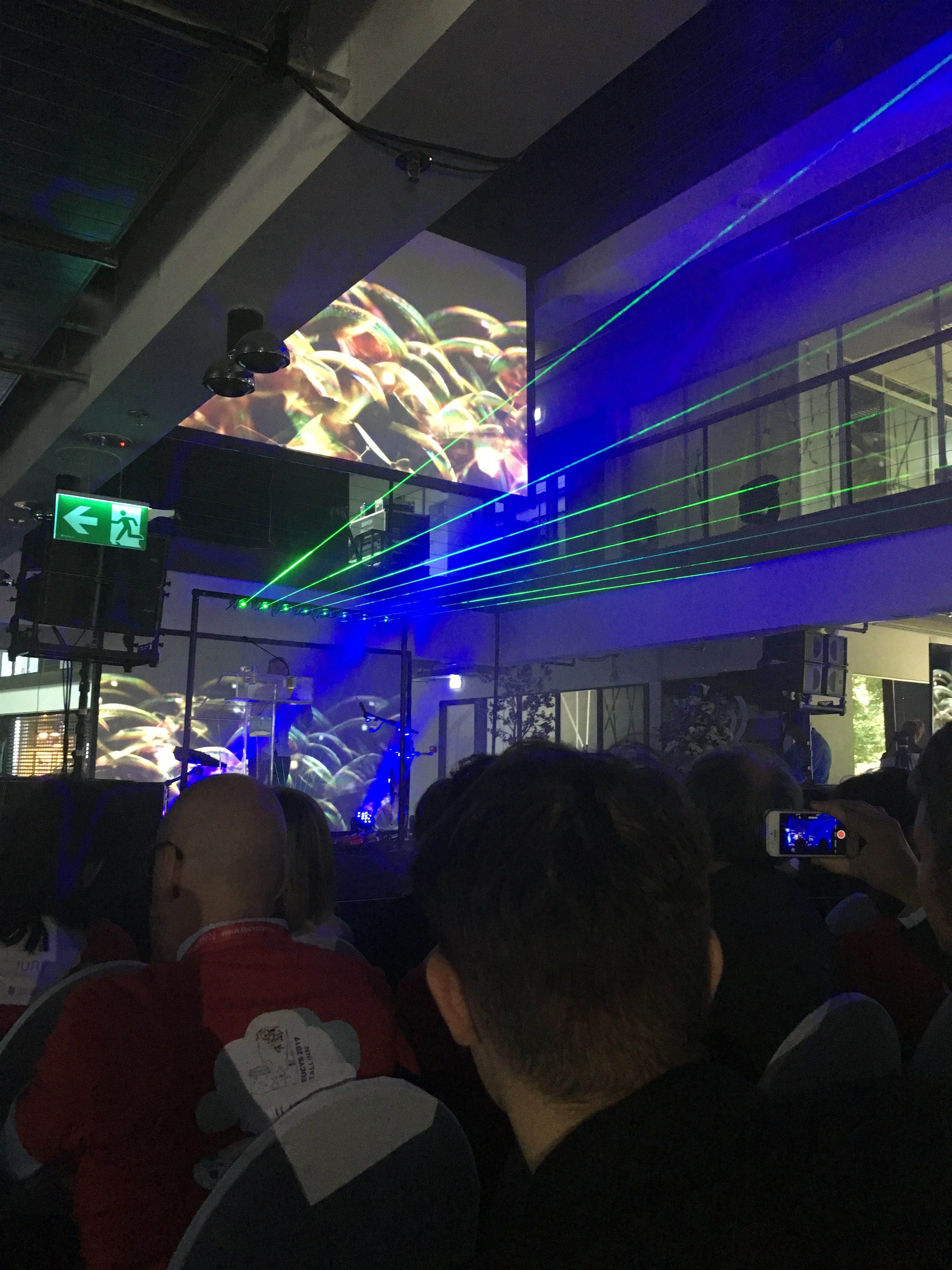 Efter invigningsceremonin började utställningen på riktigt och nervösa som vi var pratade vi med så många som möjligt för att öva upp engelskan och slippa tänka på juryn. Till sist kom det också en jurymedlem till oss. Ingen vila och ingen ro som man lätt kan tänka när vi fort efter jurymedlemmen gått skulle med bussarna till underhållningen och middagen. Vi fick åka till ett mycket coolt museum med många olika saker att göra, många knappar att trycka på och olika instrument att spela på. Vi blev indelade i grupper och fick lite uppgifter att göra vilket var jättekul. Vi fick också gå på några intressanta föreläsningar och dansa en rolig dans. Nu är vi tillbaka på hotellet (vilket är jättefint) och laddar inför morgondagen fylld av nya jurymedlemmar och erfarenheter!